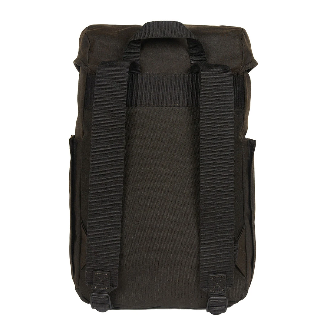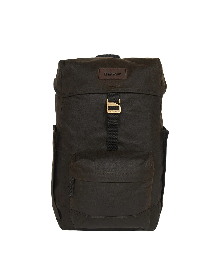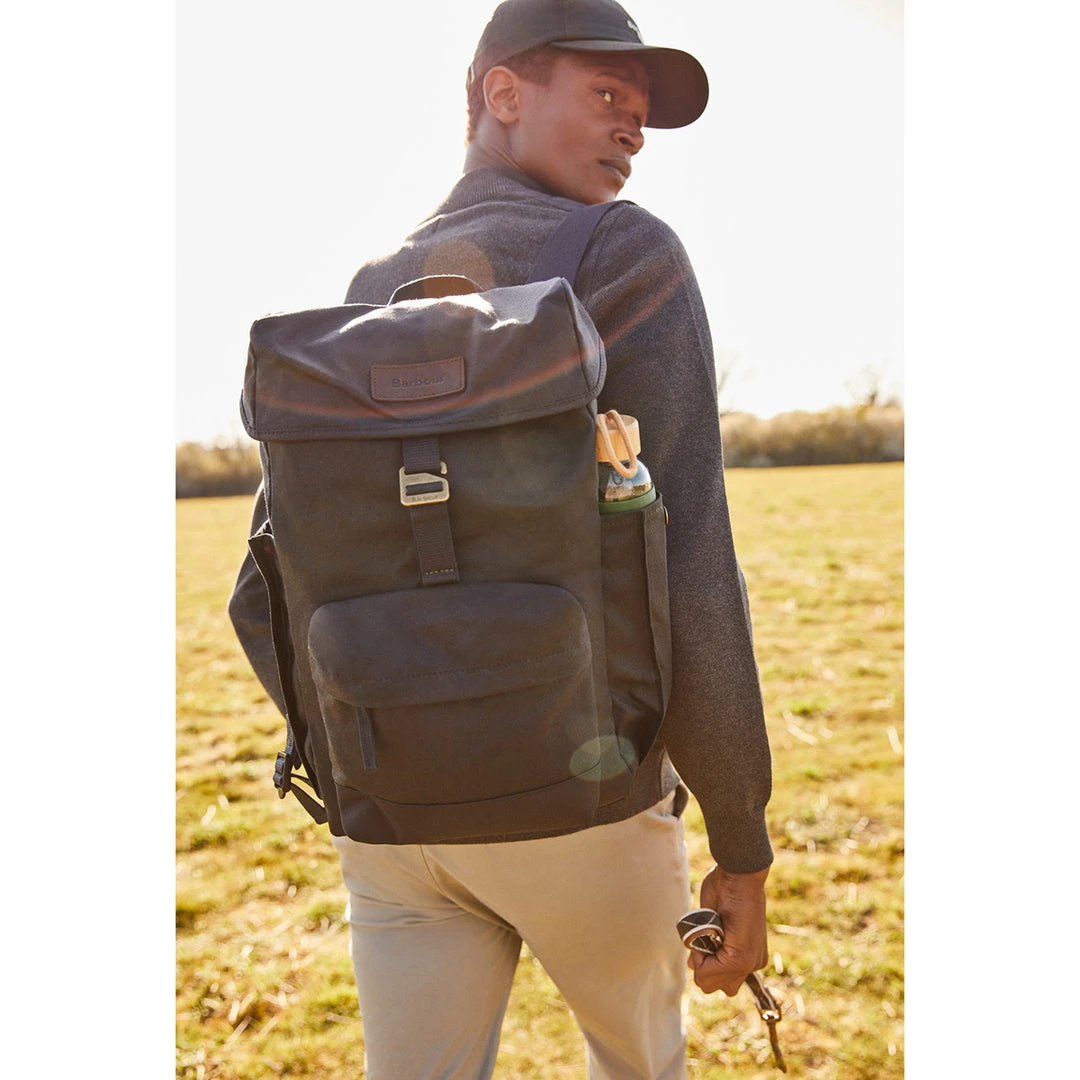The Barbour Essential wax backpack is crafted from 10oz waxed canvas with hook fastening flaps over a drawcord opening. An outer zipped pocket and adjustable webbing straps add premium quality while two outer side pockets ensure extra storage. This backpack is finished with an embossed Barbour badge to the outer front.