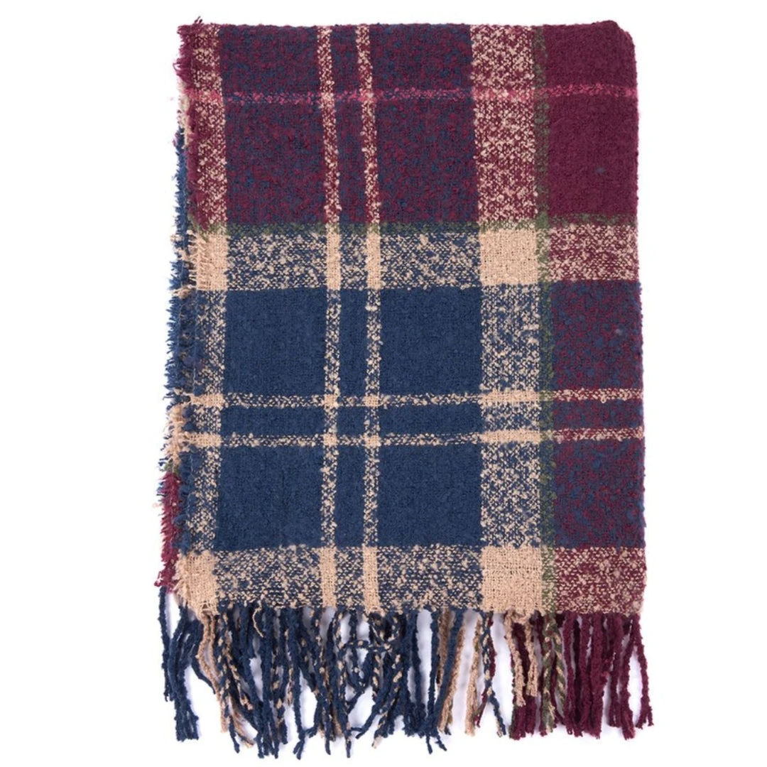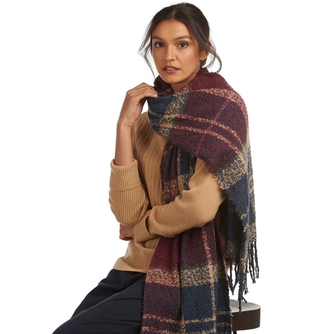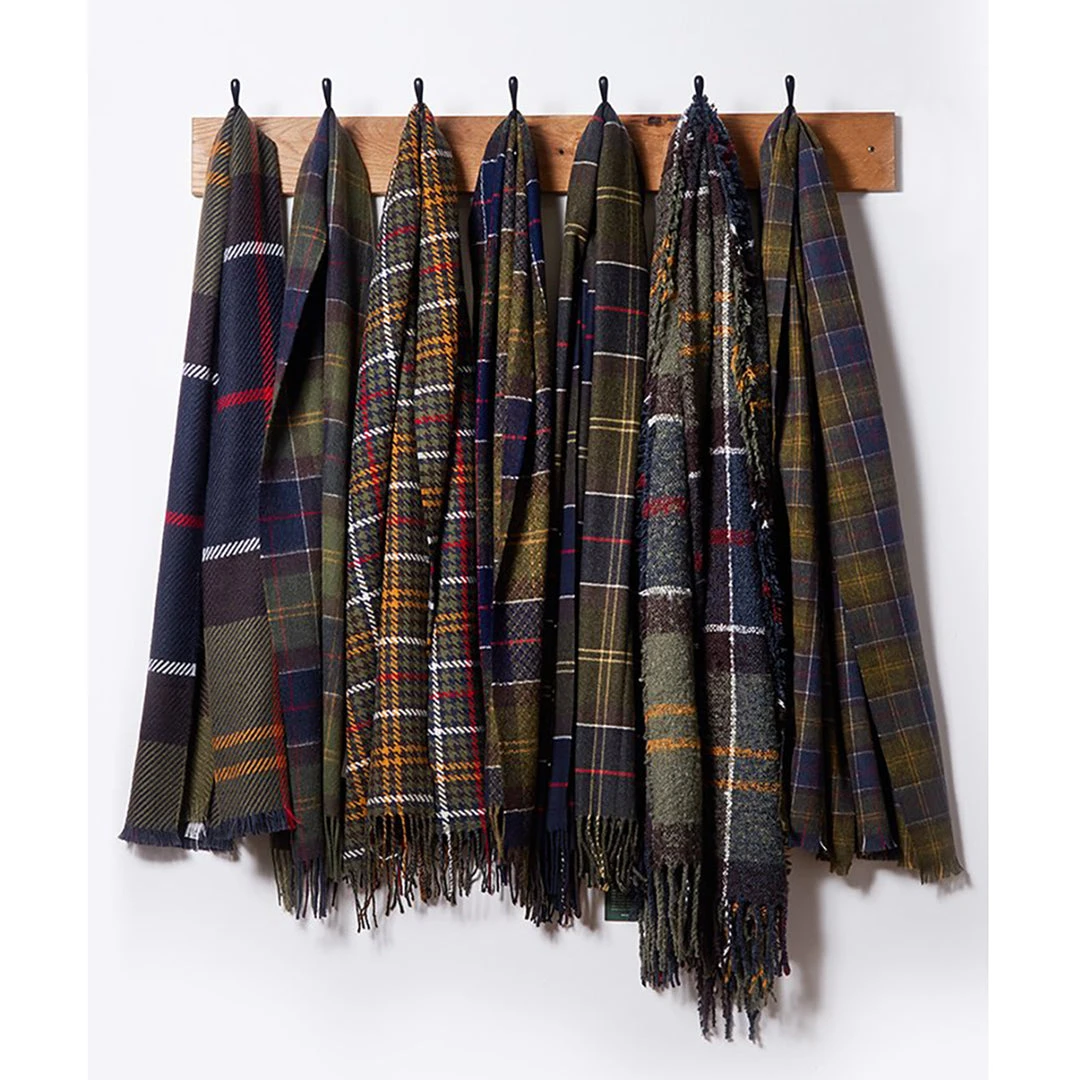 Crafted in bouclé yarn with a soft feel and a textured appearance, this wrap-style scarf features Barbour’s iconic tartan and a traditional tasseled hem.