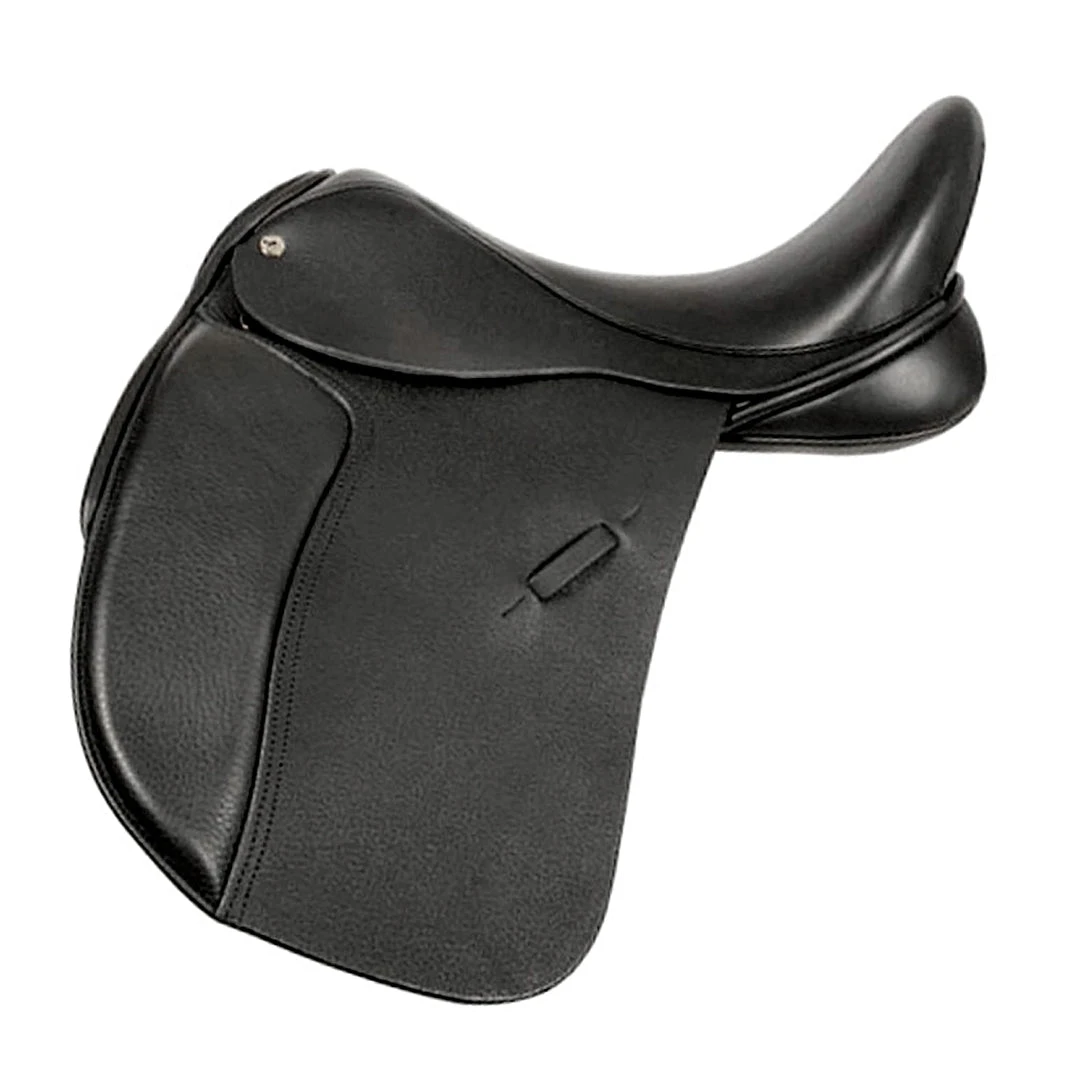 The Eloquence Dressage saddle has proved to be the most popular dressage model in this range at whatever level you are riding. It offers a medium deep seat, giving stability without restriction and an excellent center of balance. Knee rolls are of medium depth but can be custom built if required. A wide selection of trees and panel options allows us to adapt the fit for all types of horses.