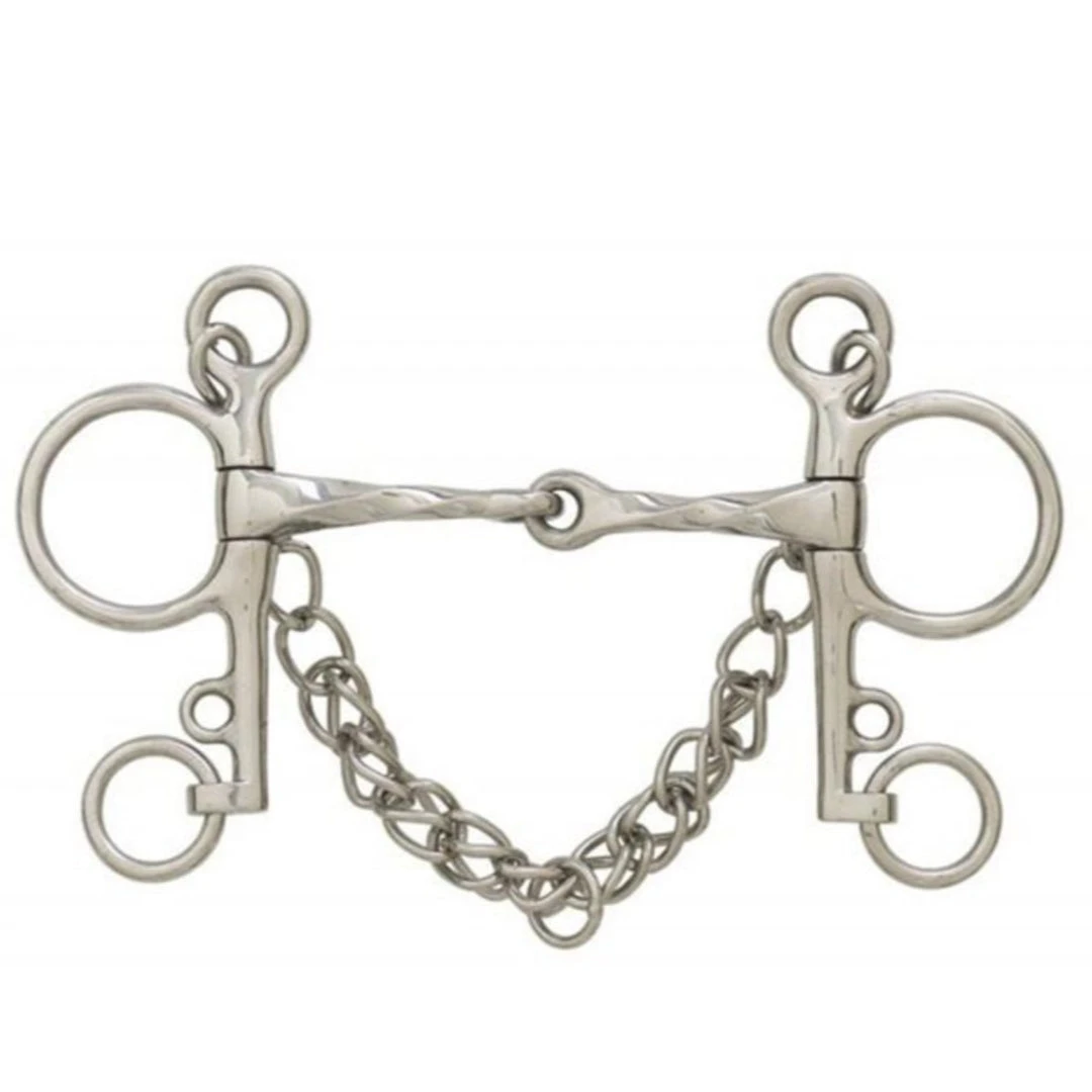 We love this Centaur® Stainless Steel Slow Twist Jointed Mouth Pelham Bit because it combines the action of a snaffle bit with a curb bit. The slow twist is great if you have a leaner or a non-stopper that has become dull to the normal smooth bit edge. This bit requires an expert hand.