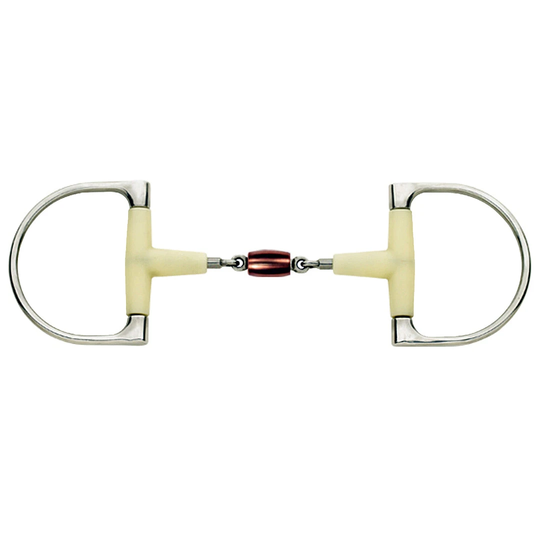 Pure copper is a soft, warm metal. By using 99.9% pure copper in the center of the mouthpiece, bit acceptance is improved. The taste of copper encourages horses to salivate and keep a moist mouth. Bits made of copper can have a very positive effect by promoting relaxation and softening. Excellent bit acceptance can be achieved by this combination of Apple scented space age polymer mouthpiece and pure copper center roller. Traditional dee ring cheek pieces allow for rein action appropriate for nearly any riding discipline!