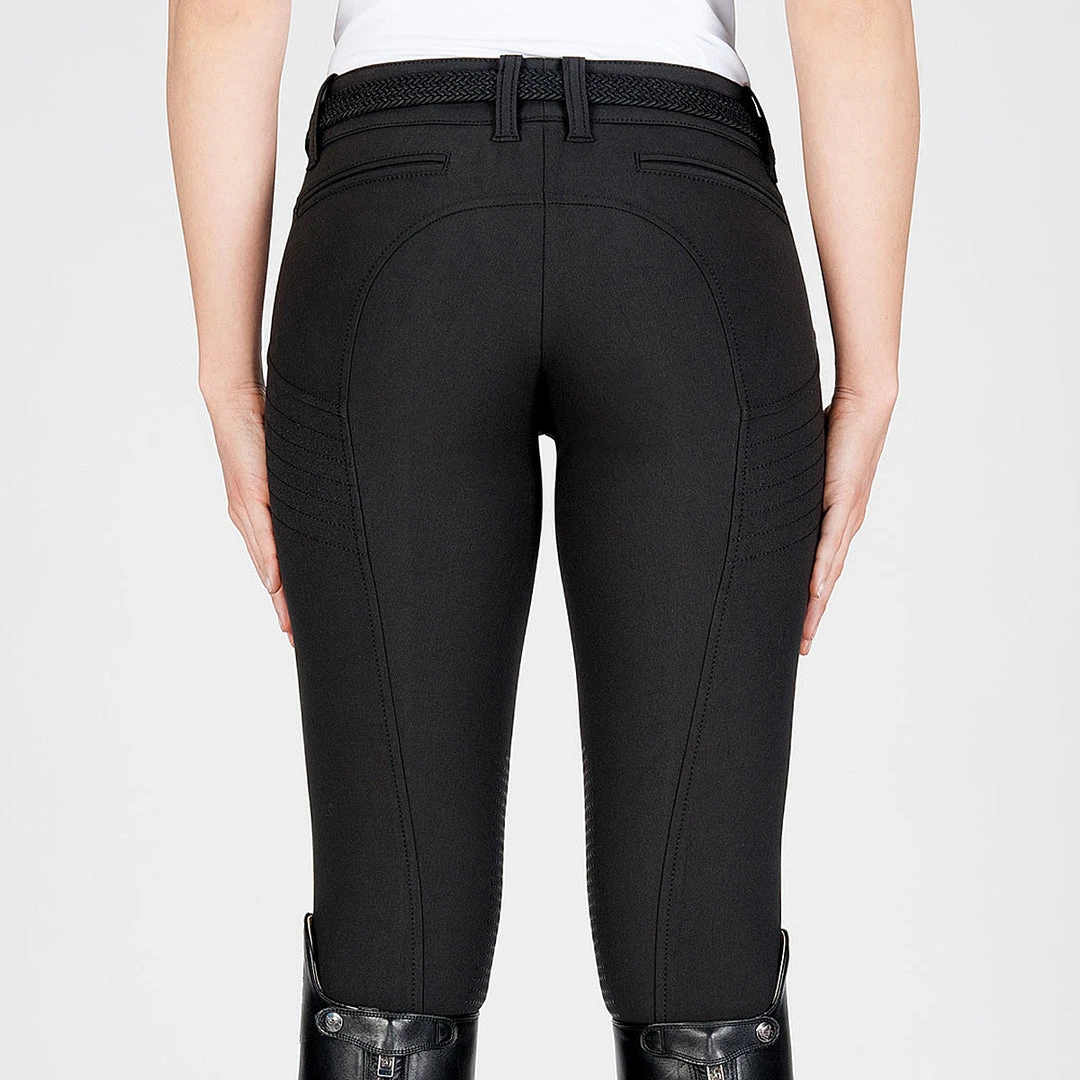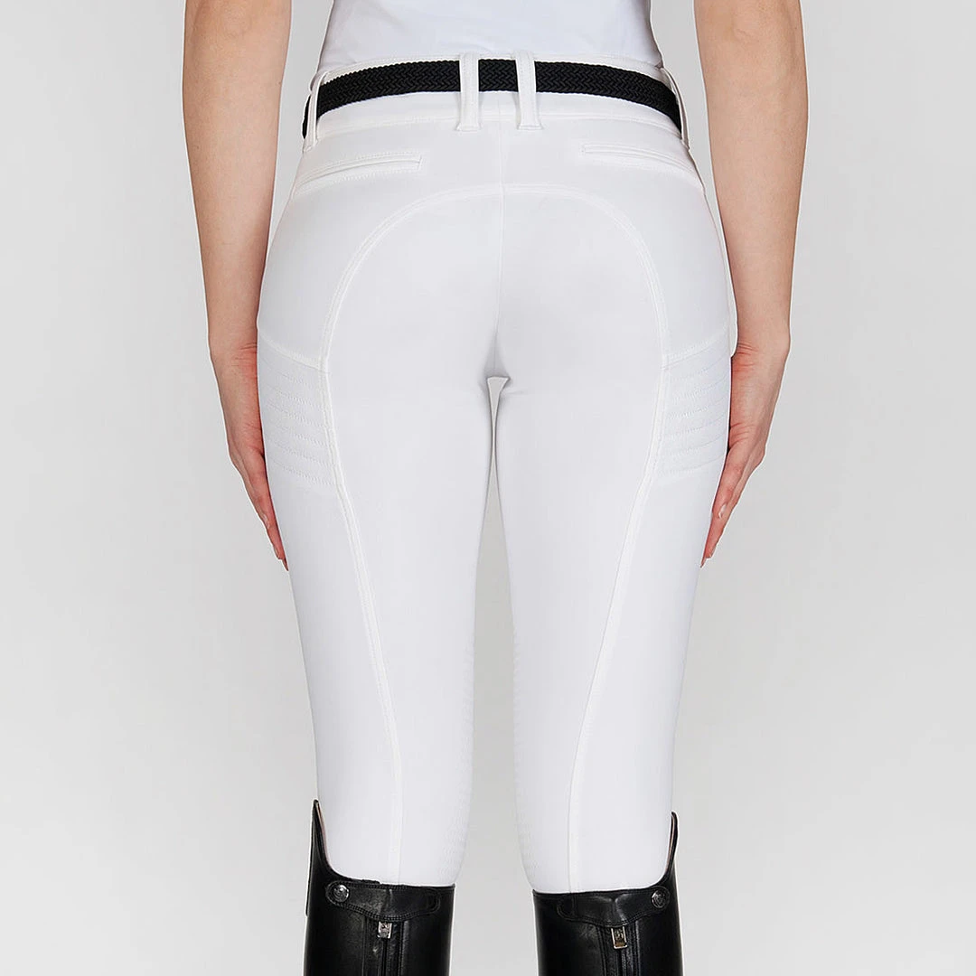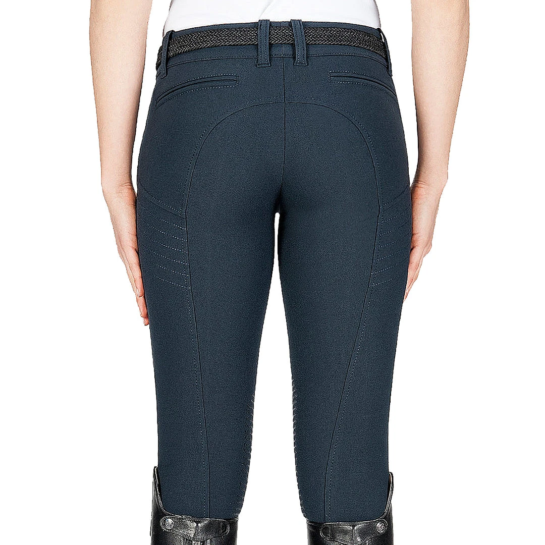 Women’s knee grip riding breeches that feature Equiline’s X-Shape comfort waist. This push-up system introduces a new fit design with inner and outer special inserts created to support your body and balance while riding.