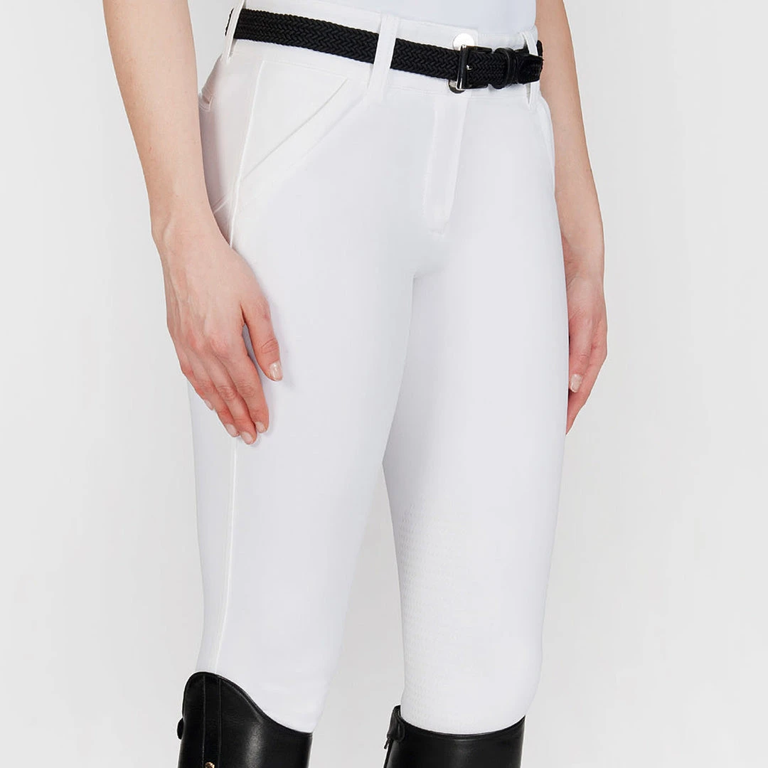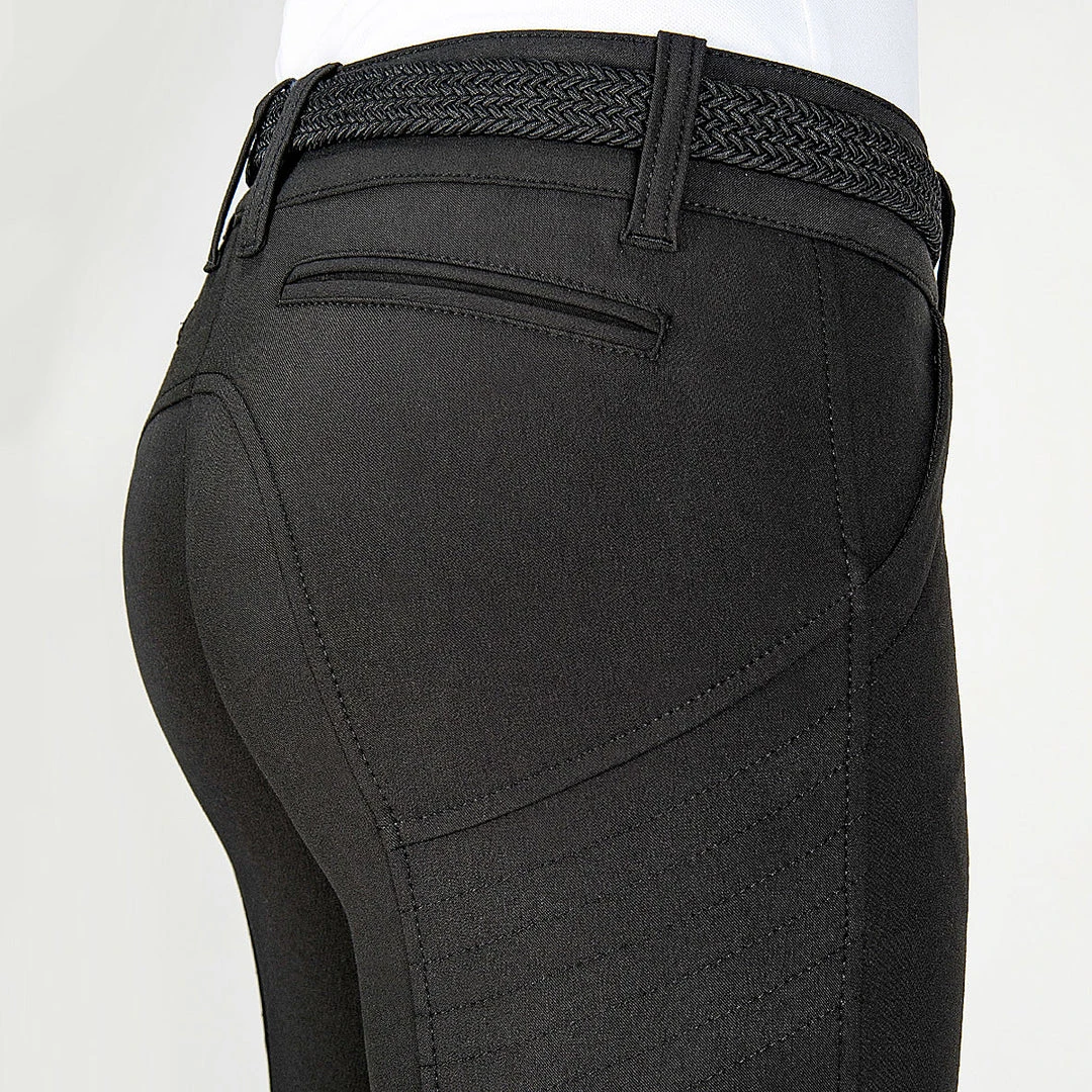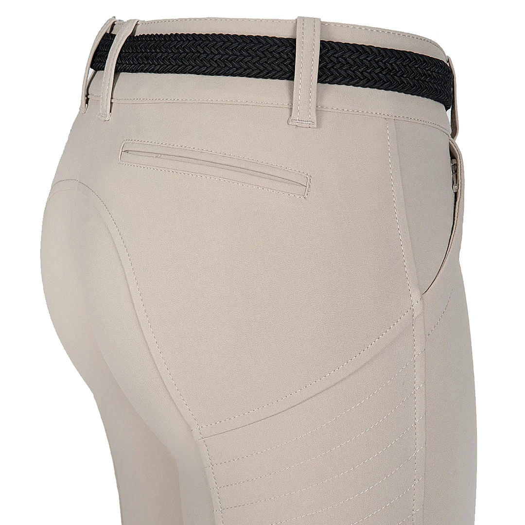 Women’s knee grip riding breeches that feature Equiline’s X-Shape comfort waist. This push-up system introduces a new fit design with inner and outer special inserts created to support your body and balance while riding.