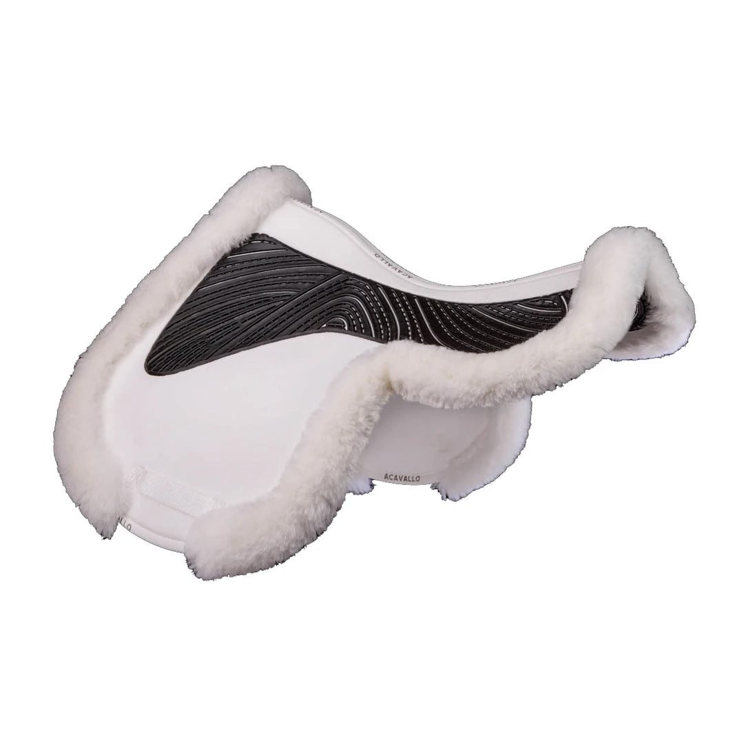 A double-sided gel pad delivers the benefit of Acavallo’s unique, shock-absorbing, therapeutic gel to both the horse and saddle at the same time. Non-slip gel means the pad won’t move on the horse’s back, and the saddle, once positioned, won’t move. This luxurious, Numnah sheepskin edge pad is designed to keep you as close to your horse as possible.