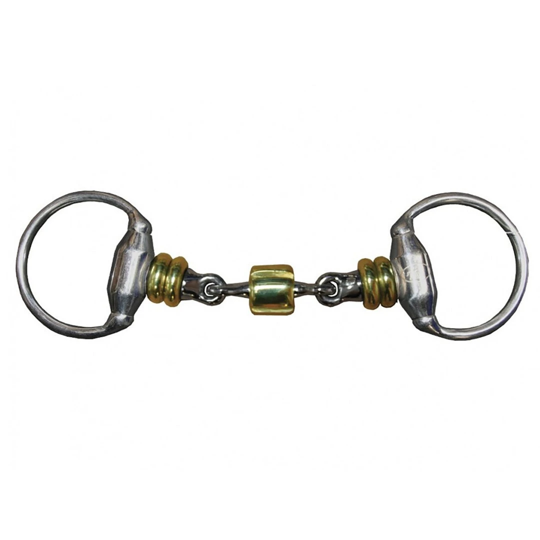 This is a fairly simple bit. The rings don’t slide so the action is more direct and stable in the mouth. The rollers on the mouthpiece give the horse something to play with and help accept the contact.