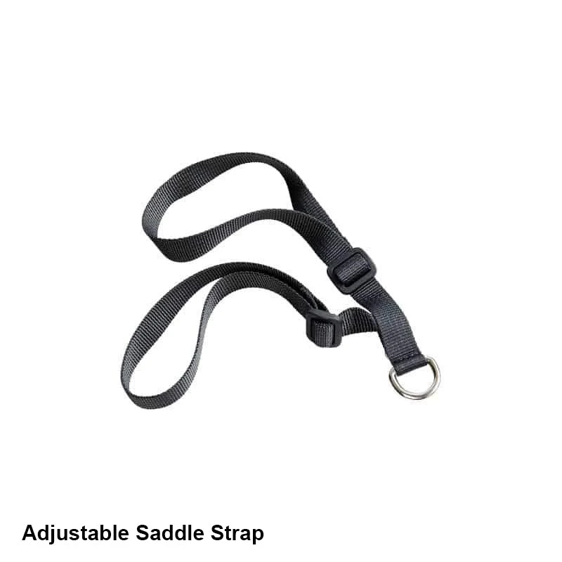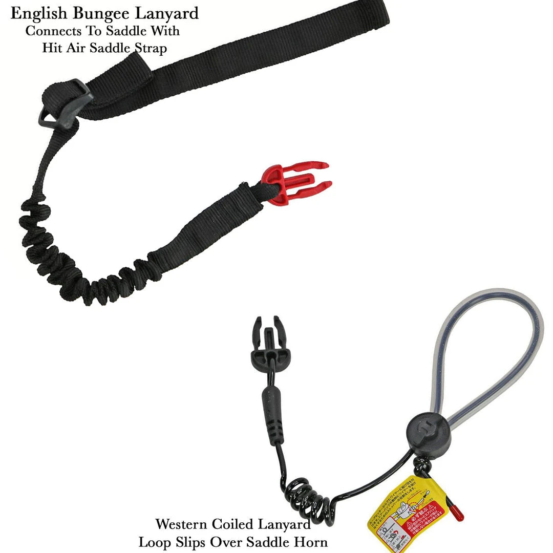 This vest currently comes as shown with the adjustable lanyard and classic saddle strap. All vests need a saddle strap attachment to function properly. The saddle strap connects to the stirrup bars, the vest is then connected to the saddle strap. Failure to use the Hit-Air saddle strap to connect your vest to your saddle may result in your vest failing to perform properly in the event of a fall.