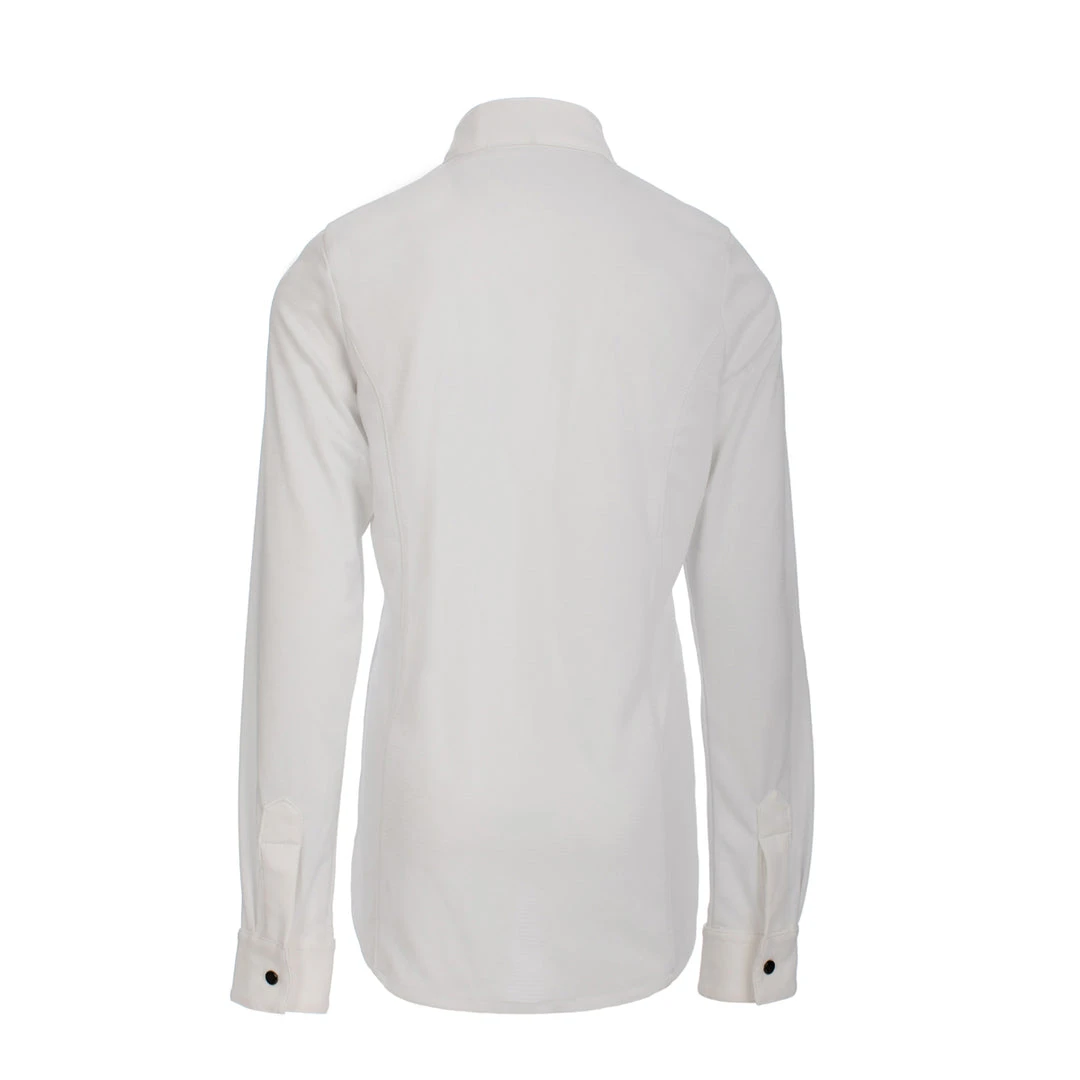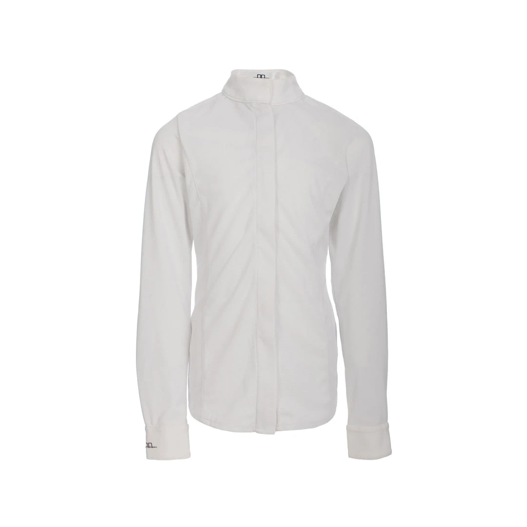 High-spec, technical girls competition shirt with Cleancool fabric; breathable/moisture-wicking, antibacterial finish, and cooling properties. Full-length zip fastening to the front, with simple snap fastening to competition collar. The luxury technical fabric provides a comfortable fit with high performance and is soft to the touch. Mesh detailing to the shoulders.