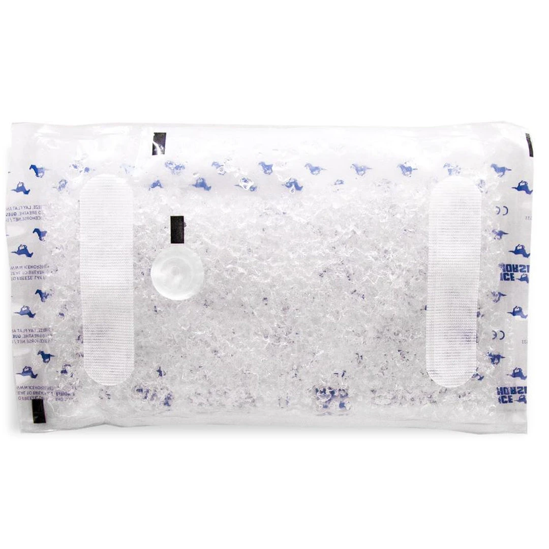 When the Cold Capsule™ inserts freeze, small ice crystals form. Fully frozen, the pack is filled with small ice crystals which look and feel like soft flakey snow, are malleable, and conform to the horse’s body.