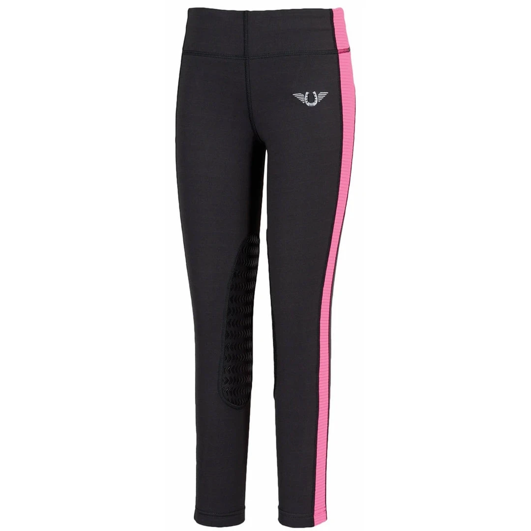 TuffRider Children’s Ventilated Schooling Riding Tights are made from technical fabric that wicks away moisture to keep the rider cool and dry. Additional features include a trendy lowrise waist, as well as grippy silicone knee patches for a secure fit in the saddle. Best of all, these riding tights are made with ventilated side strips that go down the leg for superior airflow. We carry these fashionable pull-on tights in a variety of vivid color options.