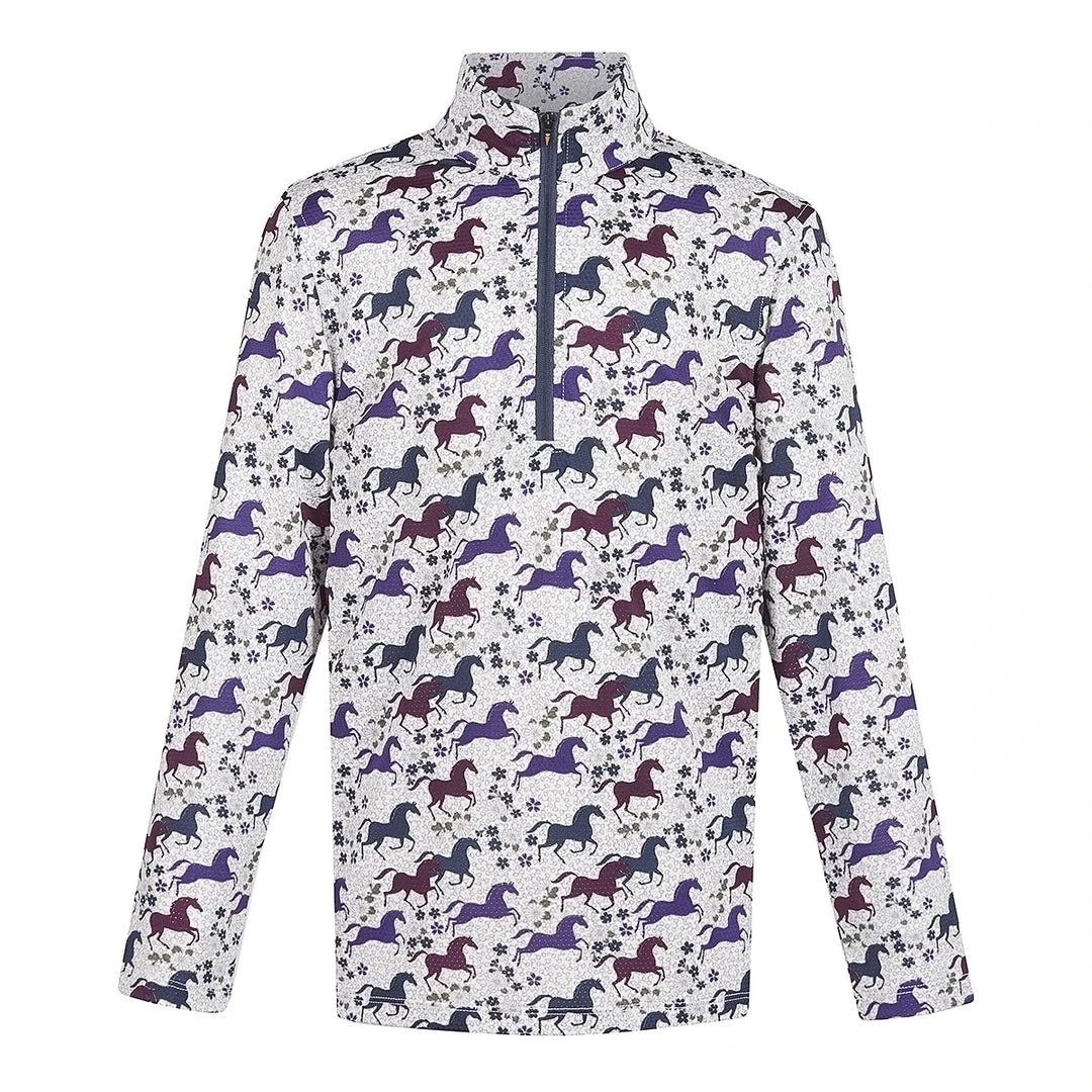 The pony and floral prints on these technical shirts are way more fun than reapplying sunscreen all day. They also help camouflage dirt and pony hair. Ice Fil® technology keeps kids cool and the eight-inch zip allows ventilation. Long sleeves, high collar, and built-in UPF+30 protection block the sun’s harmful rays.