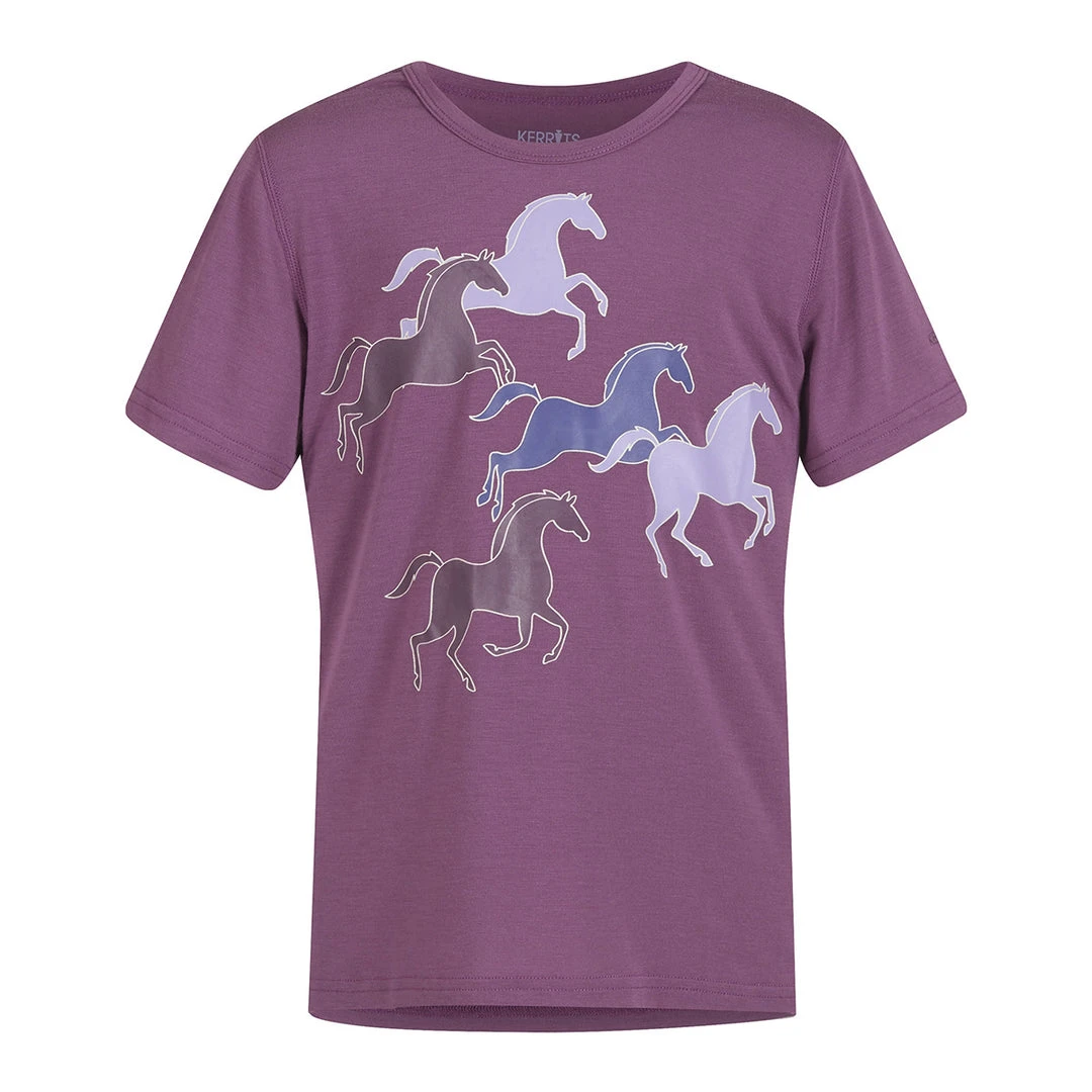 Kids will love the horses cantering across this super-soft t-shirt, and the lightweight stretchy material that breathes to keep them cool all summer. Parents will love that this technical top will outlast all the others. Fun colors coordinate with kids’ favorite Kerrits tights.