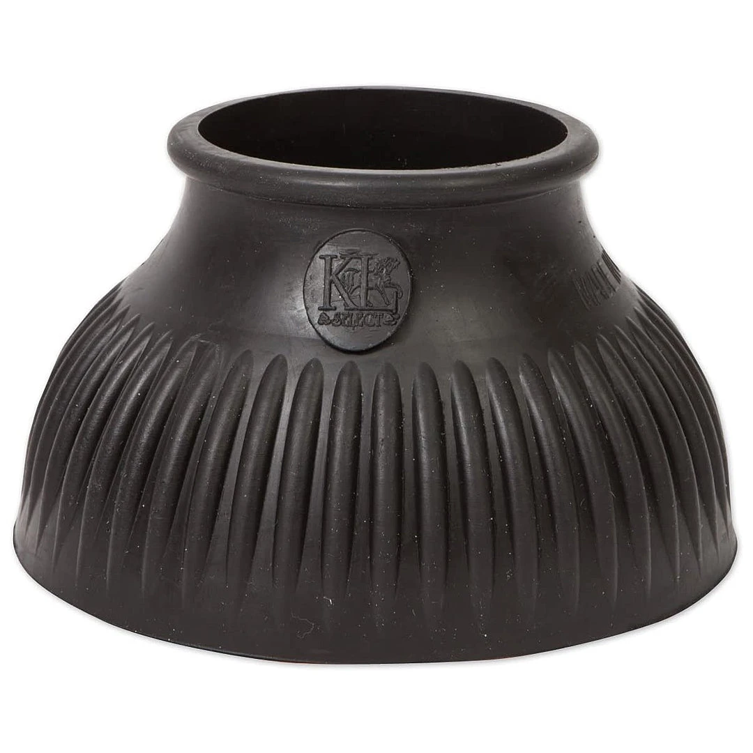KL Select bell boots, made in Italy, are constructed with 100% gum rubber. This pure material helps keep the boots flexible in cold weather. The boots are designed with a rolled top to prevent rubbing in the fetlock area. The contoured, deep ribbing on the outside resists against brushing or banging. These bell boots are thick on the bottom to protect your horse’s hooves but still remain flexible enough to easily slide on and off your horse’s hooves.