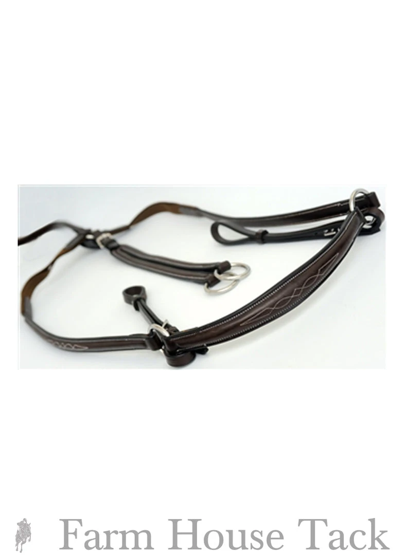 Crafted from beautiful Italian leather, raised and fancy stitched. This breastplate is true craftsmanship at its finest. Comes with a matching running martingale attachment.