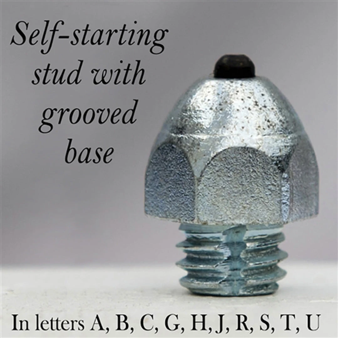 These Nunn Finer® Easiest Studs Yet now include a self-starting channel that cleans out stud holes as they are screwed in. Makes putting in studs so much easier with the new self-starting channel!