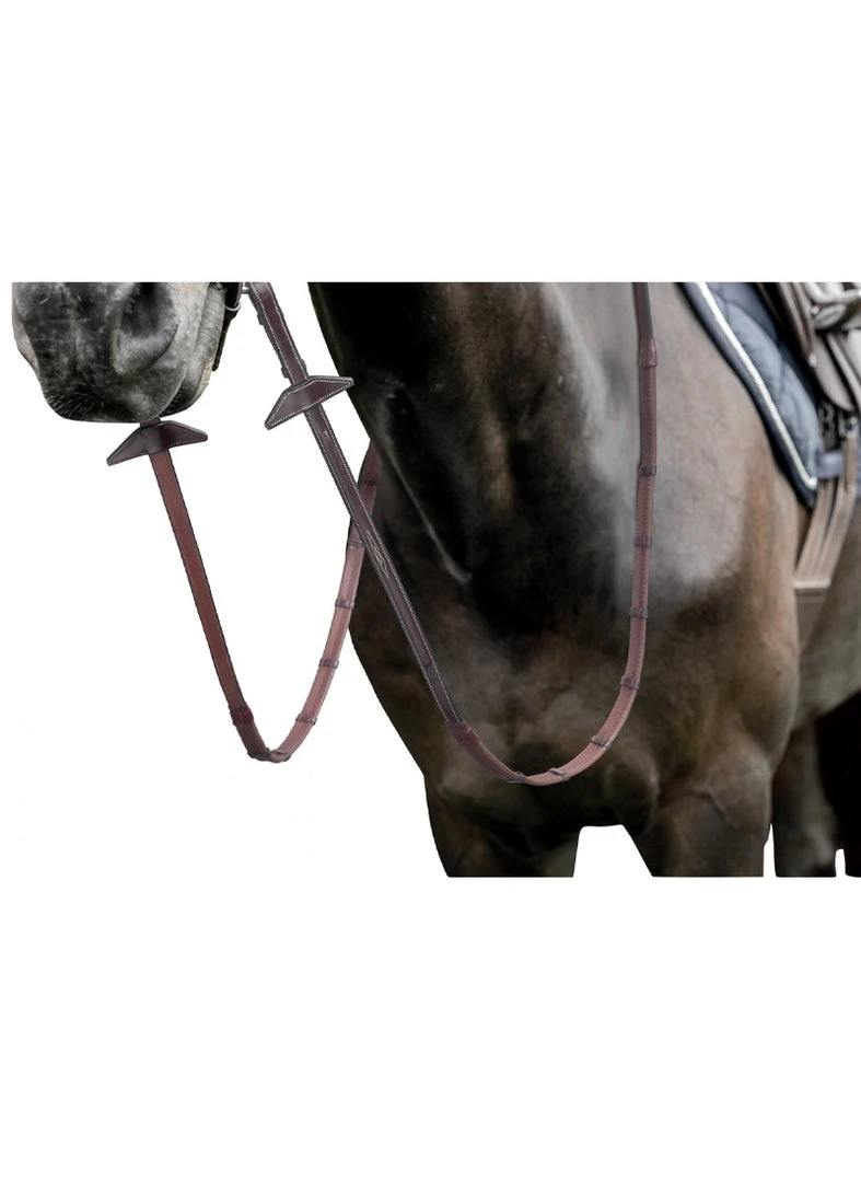 22 mm diameter rubber reins with 7 stoppers, raised leather, and fine embroidery for bridles E141/E143.
