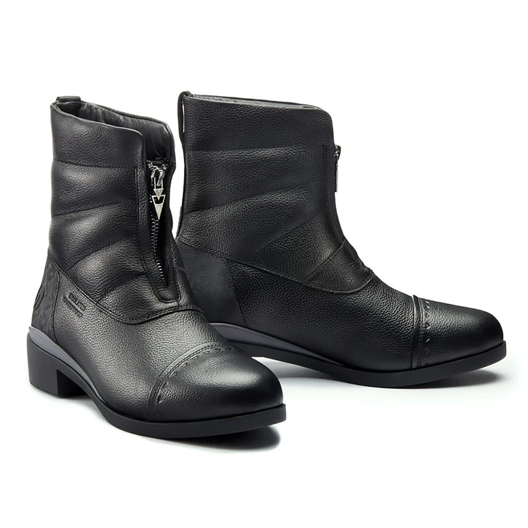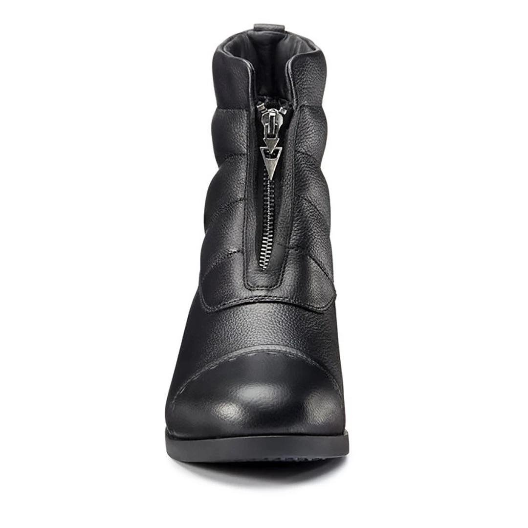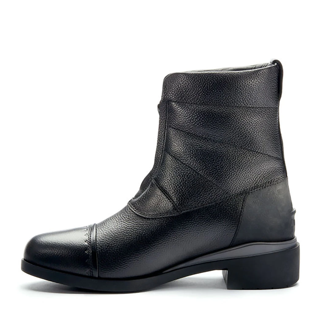 Snow? Ice? Mare that insists on a tromp through both to catch her? No problem. These boots keep feet warm, dry, and happy in the stirrups and on winter rounds all day long. RideWarm&Dry™ technology encapsulates feet for winter performance without the bulk. Seam-sealed waterproof leather uppers and internal waterproof membranes keep moisture out while an insulated lining keeps warmth in. A neoprene tongue backs the front zipper for additional water resistance. Abrasion-resistant, textured full-grain leather adds durability and style. OrangeZone™ outsole gives riders full-traction confidence in the irons and on icy ground.