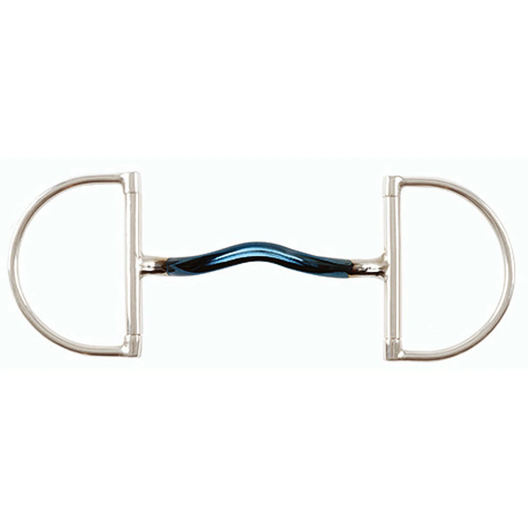Shires Blue Alloy Hunter Dee with a Medium port that allows more room for the tongue and helps to relieve pressure, this bit is very stable in the horse’s mouth.