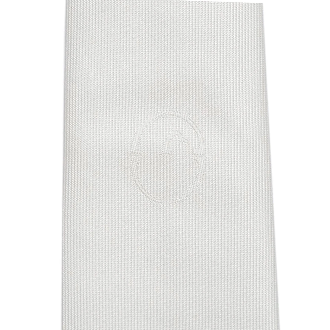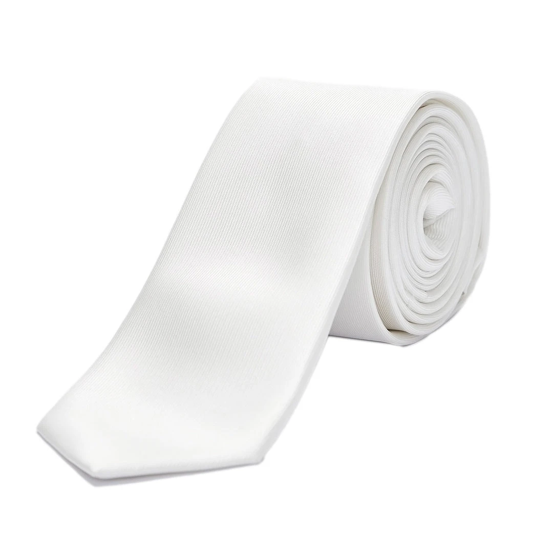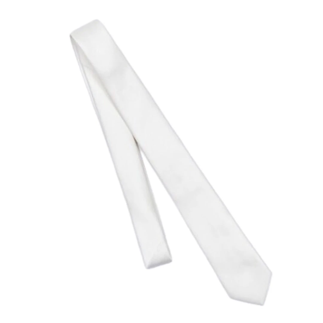 White polyester show tie with Vestrum logo.