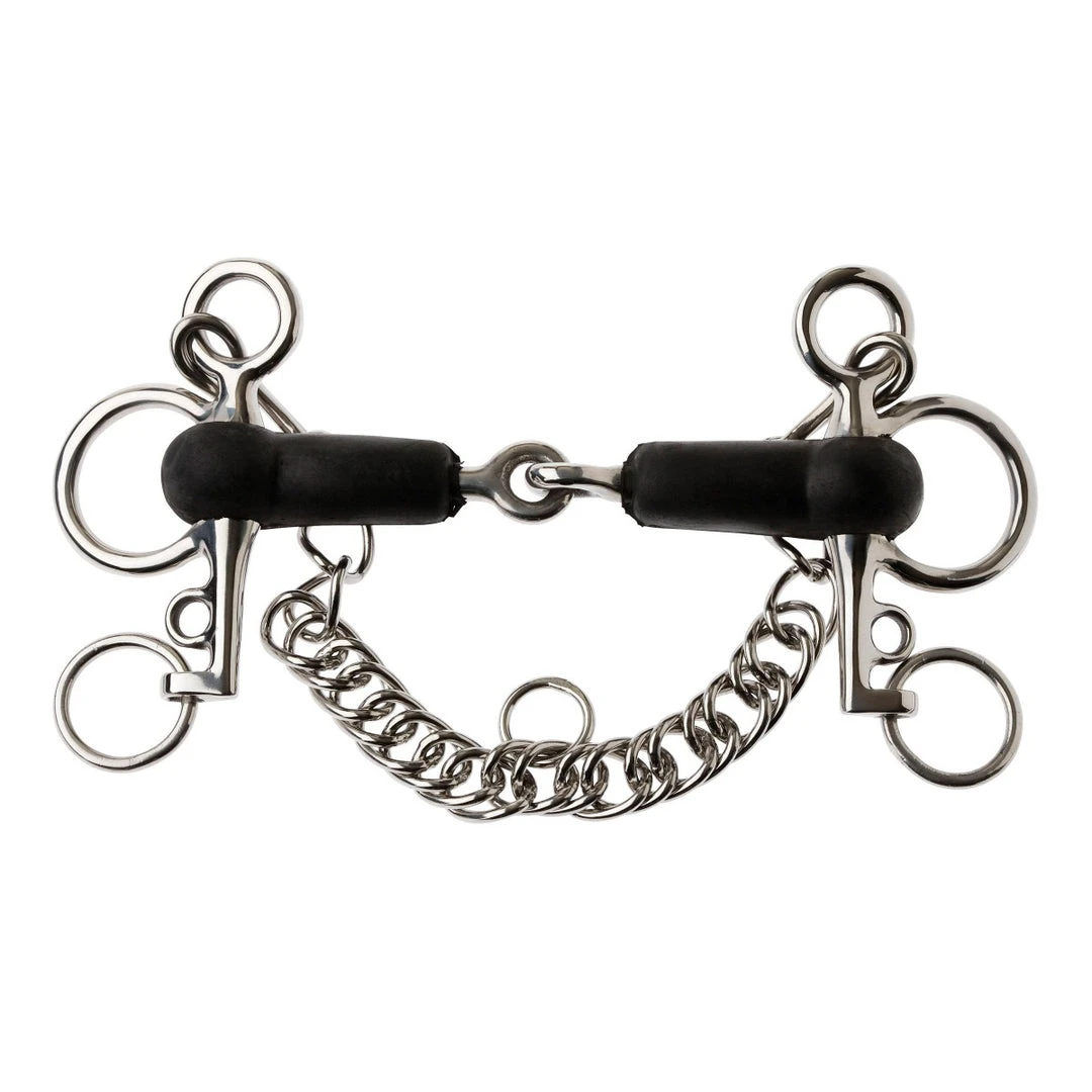 We love the Korsteel Rubber Jointed Tom Thumb Pelham Bit because the thicker mouthpiece is softer on the corners and the bars of the mouth and pressure created by the reins are spread over a larger surface area.